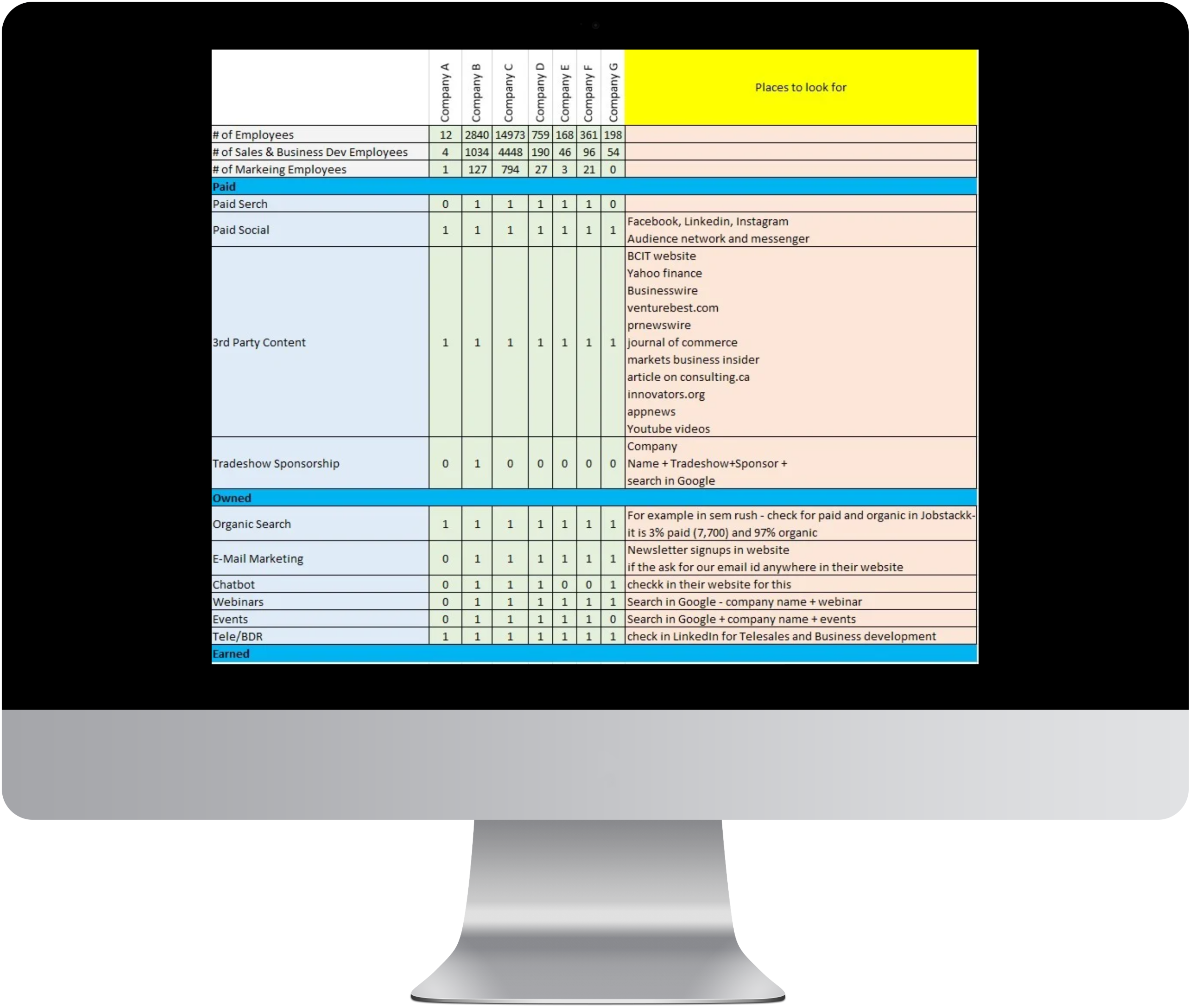 This analysis will give us a foundation to understand the competitive GTM intensity in your market and will help us formulate our strategy and plan.